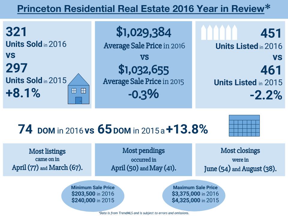 Happy 2017! A new year brings a sense of hope and renewal. Resolutions are made and the New Year gives us the opportunity to regroup and reset. Personally, we are looking forward to a happy, healthy, and productive 2017. Before we look ahead, let’s review the 2016 Princeton residential real estate market.