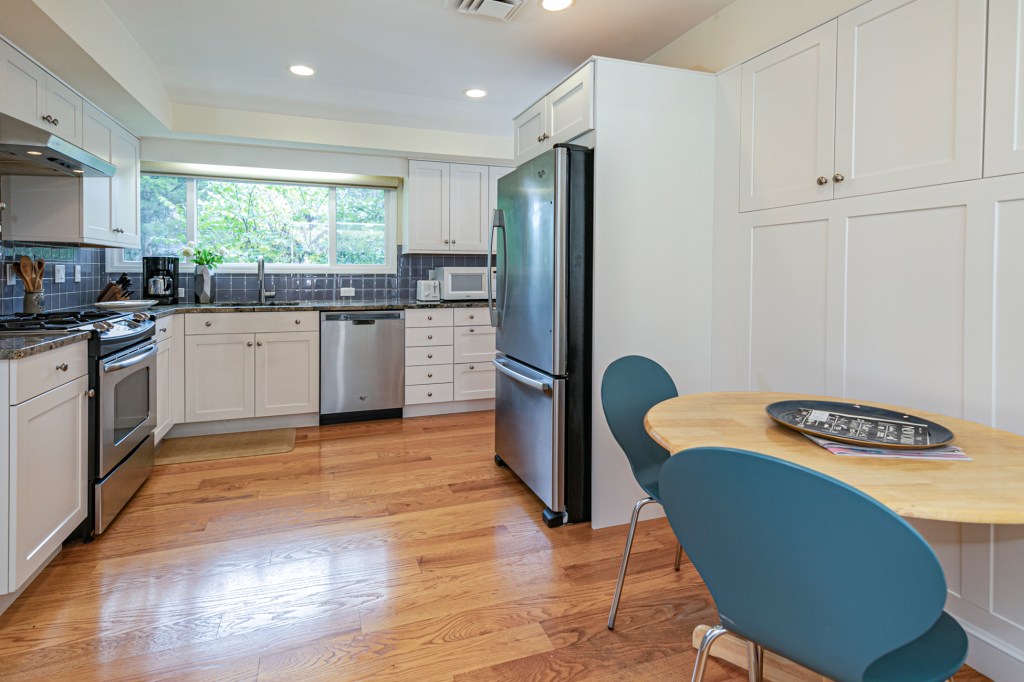 Mid-century ranch ideally situated at the end of a Littlebrook area cul de sac, where nature flourishes and wildlife thrives. You never know what you’ll spy through the home’s sliders or big picture window. Goldfinches darting from tree to tree, turtles nesting along the banks of Harry’s Brook and fox kits frolicking in the backyard are all common sights.
