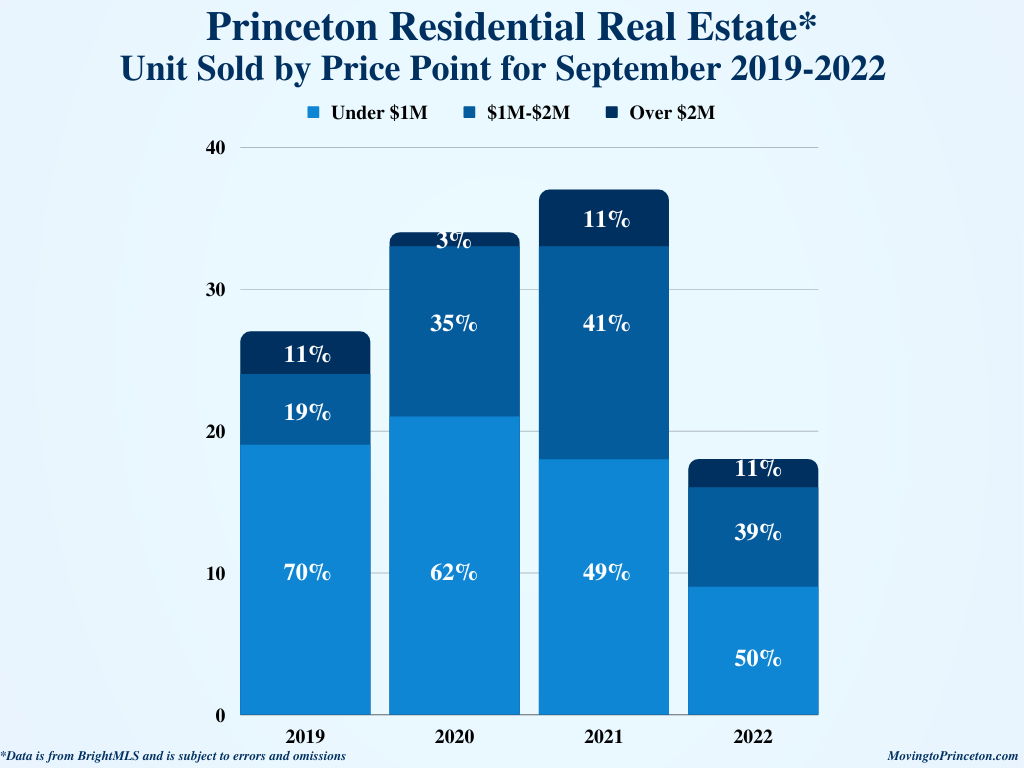 Given the extraordinary Princeton residential real estate pandemic-related market activity in the last two years, the September 2022 data that I am about to share is going to sound pretty remarkable. And like last month, I thought it would be helpful to provide years worth of data in order to include the last pre-pandemic year for better context and a richer analysis. So let’s get to it.