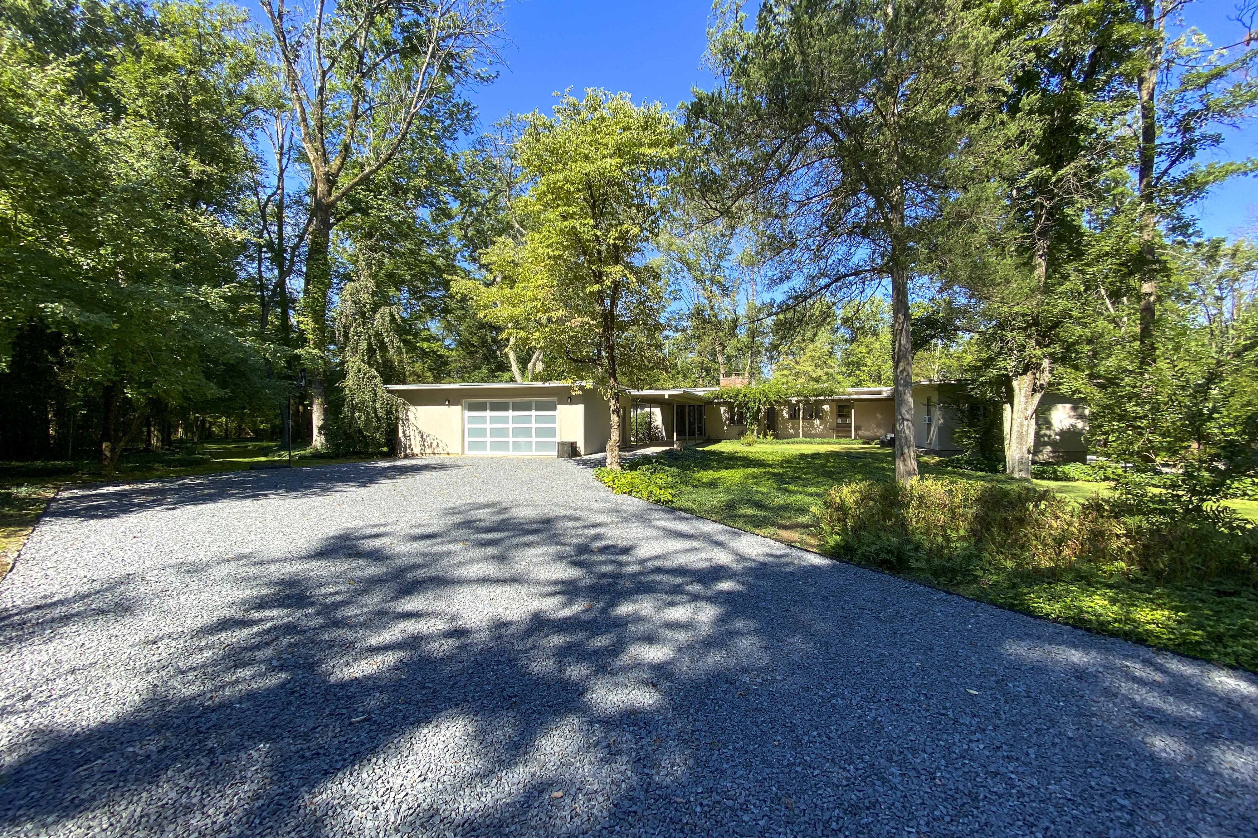 This one-of-a-kind home is located on a private lane close to downtown Princeton and the Johnson Park School, reachable by a footpath from the backyard. A Mid Century Modern beauty, it is full of pleasant surprises which include a garage that was converted into a cheerful home office plus a legal apartment with a separate entrance and driveway providing monthly income.