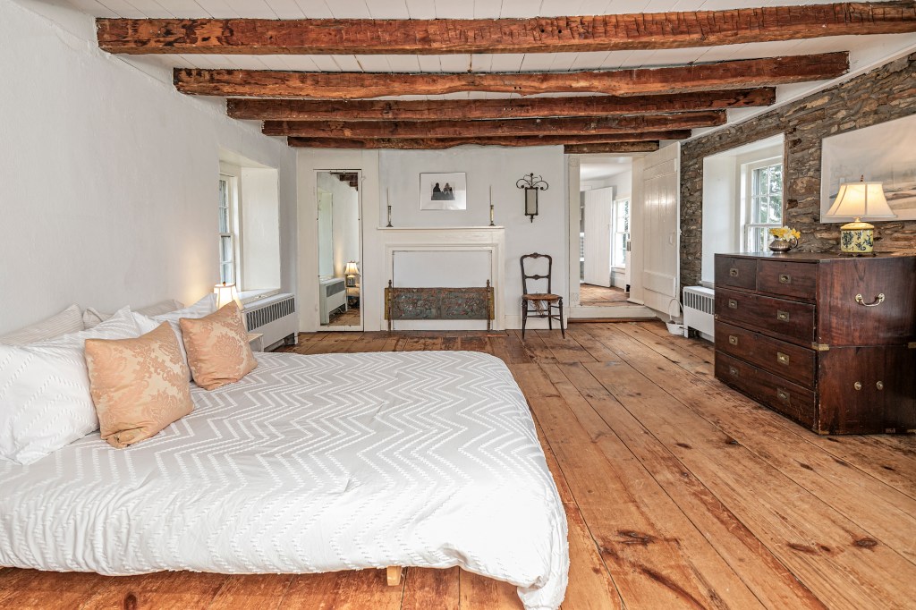 Totaling 1.41 acres, the land surrounding the stone house feels like a country farmstead with its long gravel driveway, flower patches, and a barn that may be restored over time. The home’s interior is a blissful balance of romantic and rustic, a mix of cozy spaces and generous rooms washed in natural light.