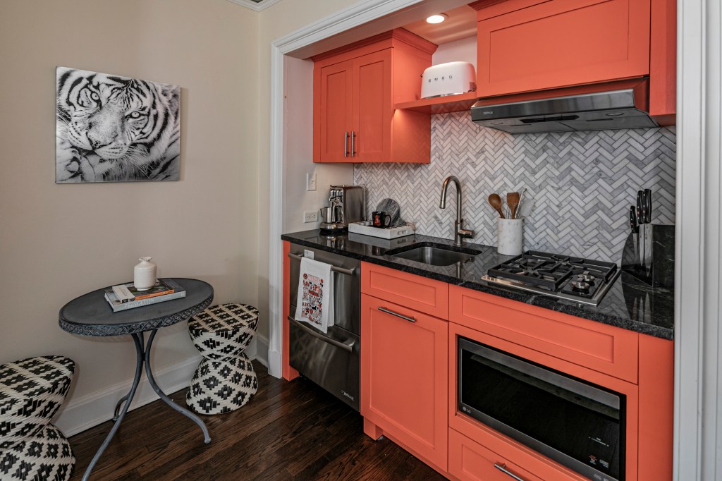 Tigers will adore the orange lacquered accents, as will anyone who loves a pop of unexpected color! Iconic, in-demand designer Ken Fulk was enlisted to renovate and liven up the classic interior and he delivered in spades.