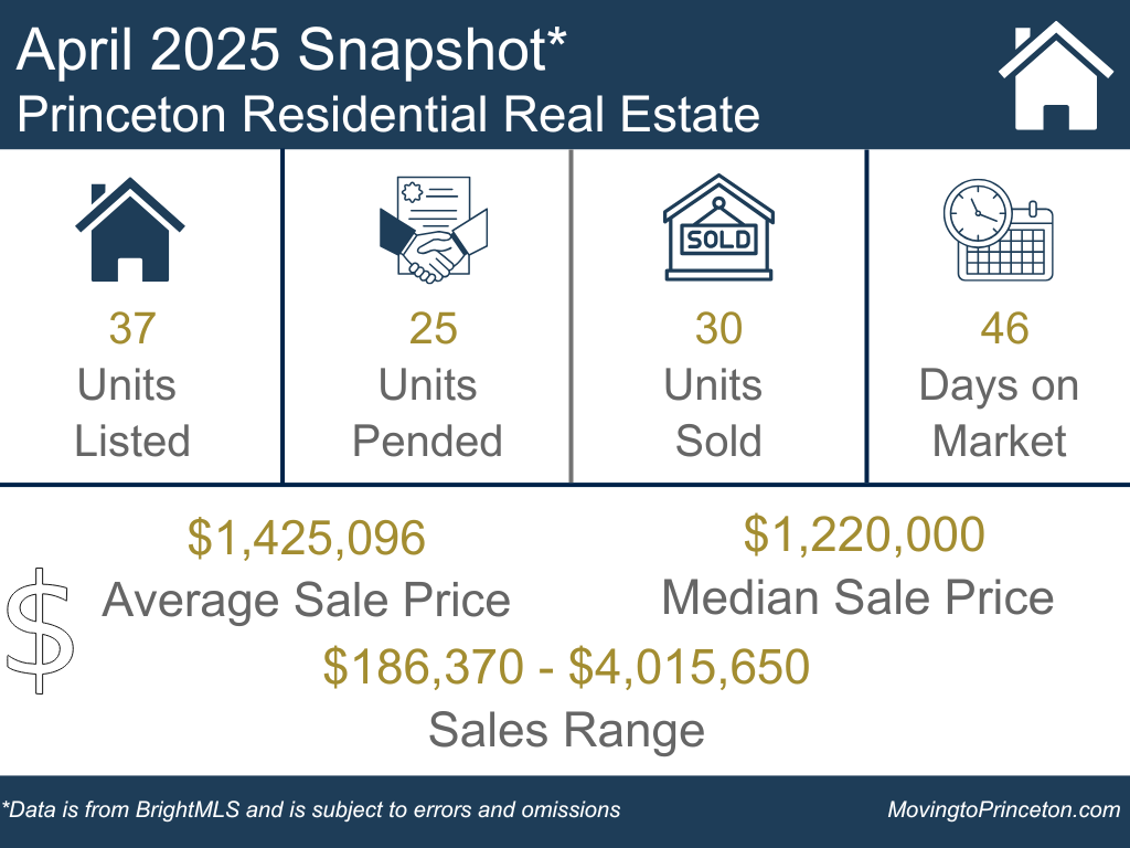 What’s going on in the greater Princeton area? Through April 2025, Princeton leads the region in both Average and Median Sale Prices, followed by Cranbury and Montgomery Township. Hopewell Township recorded 66 sales, Lawrence Township had 63, and Princeton followed closely with 62. In terms of market speed, Hopewell Borough leads with an average DOM of just 16 days, followed by Montgomery and Plainsboro, each averaging 29 days on market.