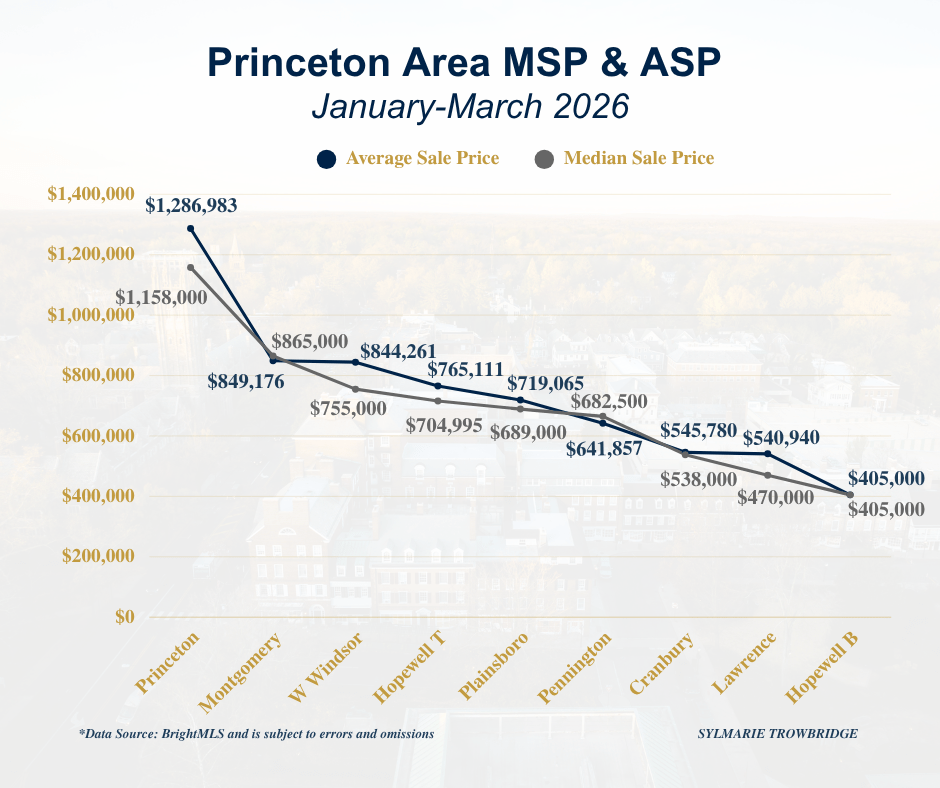 Now that we have a quarter’s worth of data, I wanted to provide additional perspective for those curious about activity in the surrounding area. As you will see, Hopewell leads with the most units sold, followed by Lawrence, West Windsor, and Princeton. Princeton continues to rank highest in both median and average sale prices, followed by Montgomery and West Windsor.