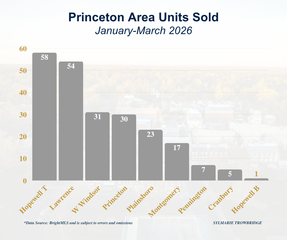 Now that we have a quarter’s worth of data, I wanted to provide additional perspective for those curious about activity in the surrounding area. As you will see, Hopewell leads with the most units sold, followed by Lawrence, West Windsor, and Princeton. Princeton continues to rank highest in both median and average sale prices, followed by Montgomery and West Windsor.