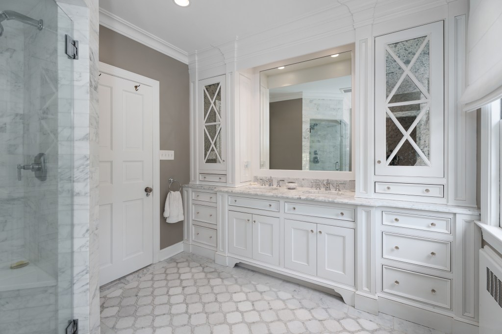 There are six bedrooms in total and every spotless bathroom is beautifully tiled, but none compare to the primary suite dressed in new designer wallpaper and lighting. The custom-detailed dressing room, vanity station and mosaic marble bath are stunning spots to prepare for the day or an evening out.